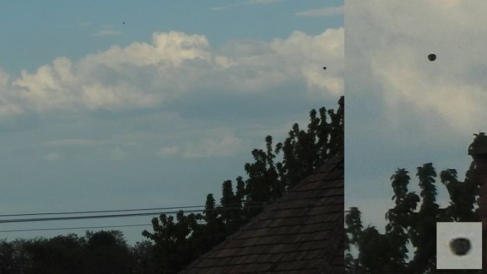 PS: fotka je upravená, odstraňovala som stožiar v pozadí (tak som si aj všimla toho objektu na oblohe). Na ďalšej fotke zaznamenanej o 2min neskôr, ani na fotkách pred tým ho vidieť nie je.