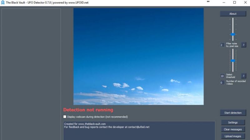 UFO Detektor - program na PC - hľadanie UFOUFO DetektorRád by som vám predstavil bezplatný open-source program na PC, ktorý je určený k zaznamenávaniu UFO videí. Stačí vám k tomu PC s windows a webkamera (alebo iné zariadenie s funkciou PC kamery). Použiť sa dá aj IP kamera, je však potrebné doinštalovať potrebné ovládače, ktoré dokážu IP kameru používať aj ako webkameru. Taktiež je možné používať viacero kamier súčasne. Ako funguje UFO detektorProgram po spustení nepretržite skenuje video z kamery, následne ho v reálnom čase detekuje a automaticky filtruje známe objekty, ktoré má uložené v databáze. Známe objekty ako sú lietadlá, vtáky a podobne ignoruje. Objekty, ktoré program nedokáže identifikovať sú uložené do databázy ako video - pre vašu neskoršiu podrobnejšiu analýzu. Tieto videá sú zaznamenávané v bezstratovej kompresii videa, to znamená že sú uložené bez akýchkoľvek úprav - v najvyššej možnej kvalite. Inštalácia programu do PCPred spustením programu pripojte kameru k počítaču a umiestnite ju na ideálne miesto - najlepšie tak, aby v zornom poli bola vo väčšej časti viditeľná obloha. Pred inštaláciou si stiahnite bezplatný prehrávač médií VLC, aby ste mohli videá bez problémov prehrávať. Stiahnite si program UFO detektor, link uvádzam na konci článku. Potom môžete spustiť súbor setup.exe, následne postupujte podľa pokynov inštalačného sprievodcu. Po inštalácii sa na ploche zobrazí skratka "UFO Detector". Program spustíte dvojitým kliknutím. Tipy pre umiestnenie kameryDobré umiestnenie kamery je rozhodujúce. Ak je kamera umiestnená za oknom, skúste objektív umiestniť čo najbližšie k sklu, aby ste zabránili strate zaostrenia webovej kamery. Ak je to možné, vypnite funkciu automatického zaostrenia. Ak používate program počas noci, skúste položiť niečo priamo za webovú kameru, aby ste sa vyhli odrazu svetla vo vnútri okna. Ak máte PC so slabším výkonom, doporučujem neodškrtávať pole "Display webcam during detection" - video sa vám v reálnom čase nebude zobrazovať (len statická snímka), program však video detekuje normálne. Zvýši to výkon o ± 20%. Info o programe a odkazy k stiahnutiuProgram vytvoril anglický programátor Mark Lakum, viedlo ho k tomu presvedčenie, že nad nami sa pohybujú rôzne neidentifikované objekty, len nevenujeme dosť času sledovaniu oblohy. Program bol k dispozícii na stránke ufoid.net(už nefunkčný web), v súčastnosti je k dispozícii v upravenej a funkčnej verzii na nasledovnej adrese: https://www.theblackvault.com/casefiles/the-ufo-detector/ UFO videá zhotovené pomocou programu: https://www.theblackvault.com/casefiles/category/ufos/ufo-detector/ Ak vám niečo nefunguje, alebo máte nejaké otázky napíšte príspevok do diskusie nižšie, rád poradím. |